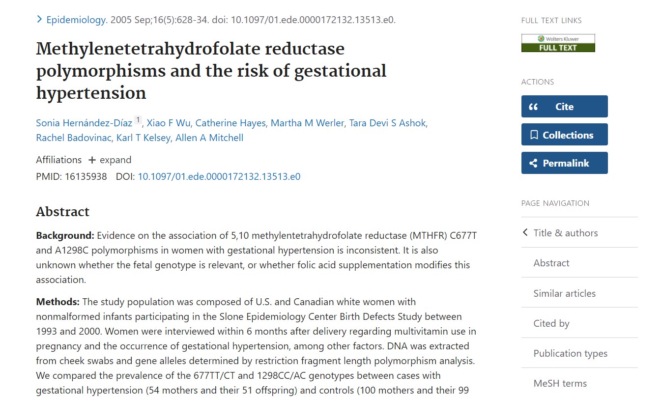 Hayes C, et al.Polimorfismi della metilenetetraidrofolato reduttasi e