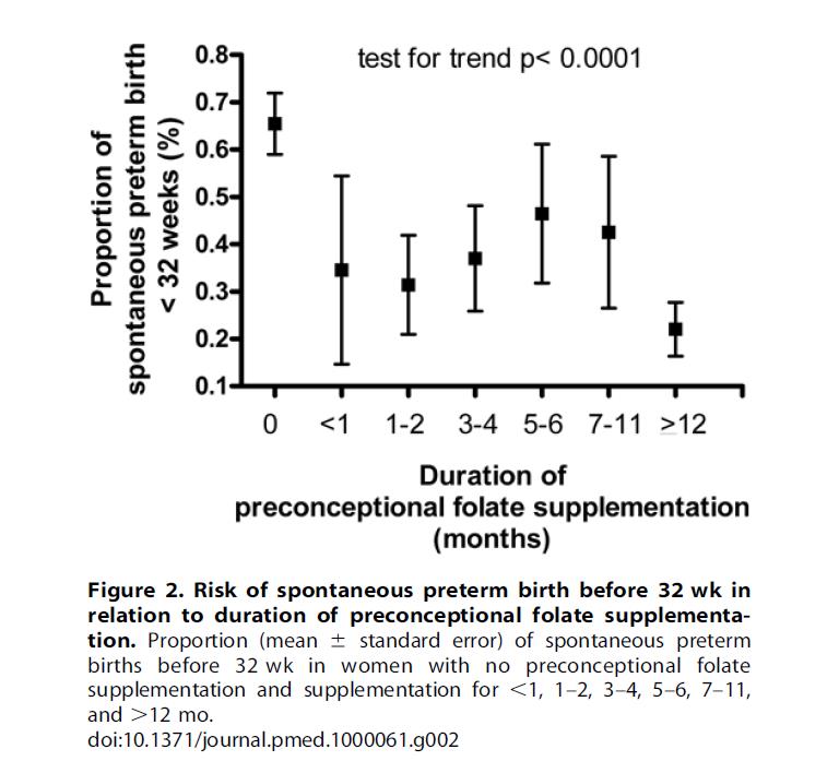 [1] Bukowski R, et al. Preconcezionale supplementazione di folati e rischio di parto pretermine spontaneo: una coorte studiare. PLOS Med. 2009 maggio;6(5):e1000061.