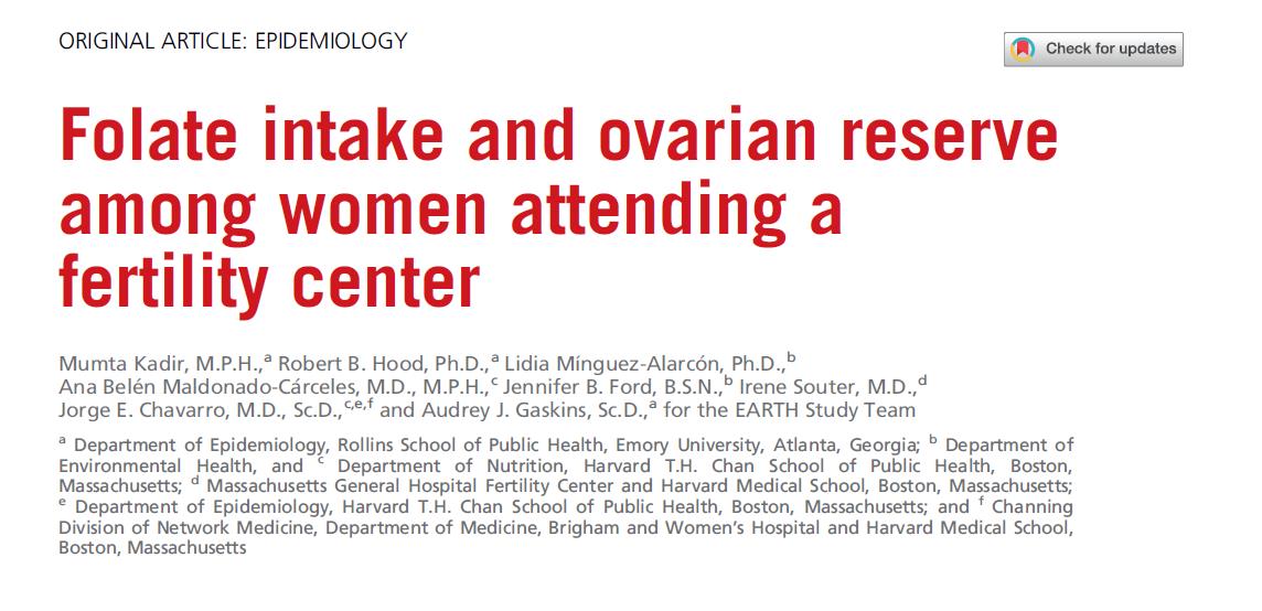 Questo studio ha analizzato i dati di 552 donne che hanno visitato il Centro per la fertilità del Massachusetts General Hospital negli Stati Uniti, focalizzato sull’associazione tra apporto di acido folico e funzione di riserva ovarica (misurato mediante conteggio dei follicoli antrali, AFC).